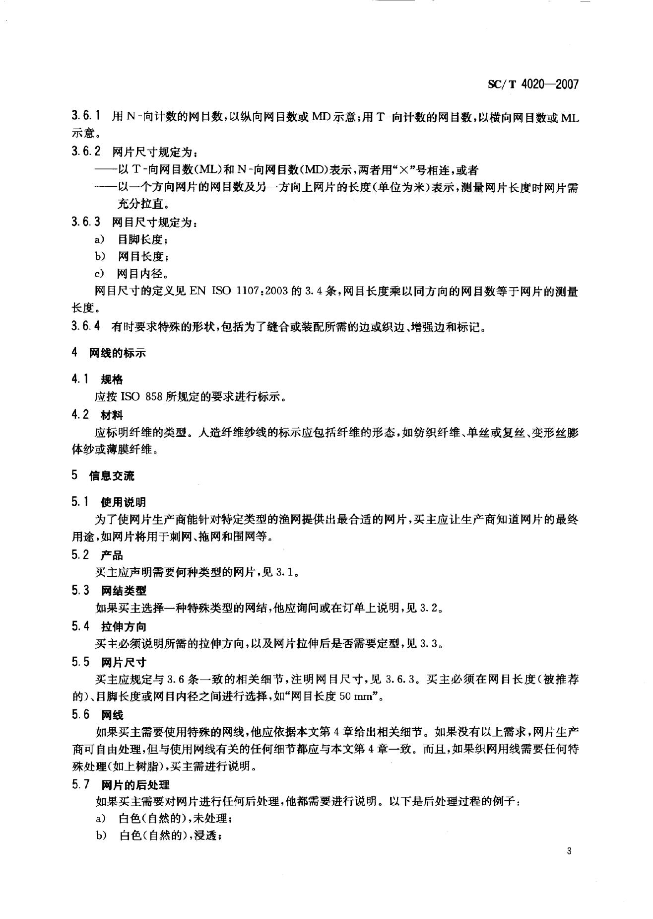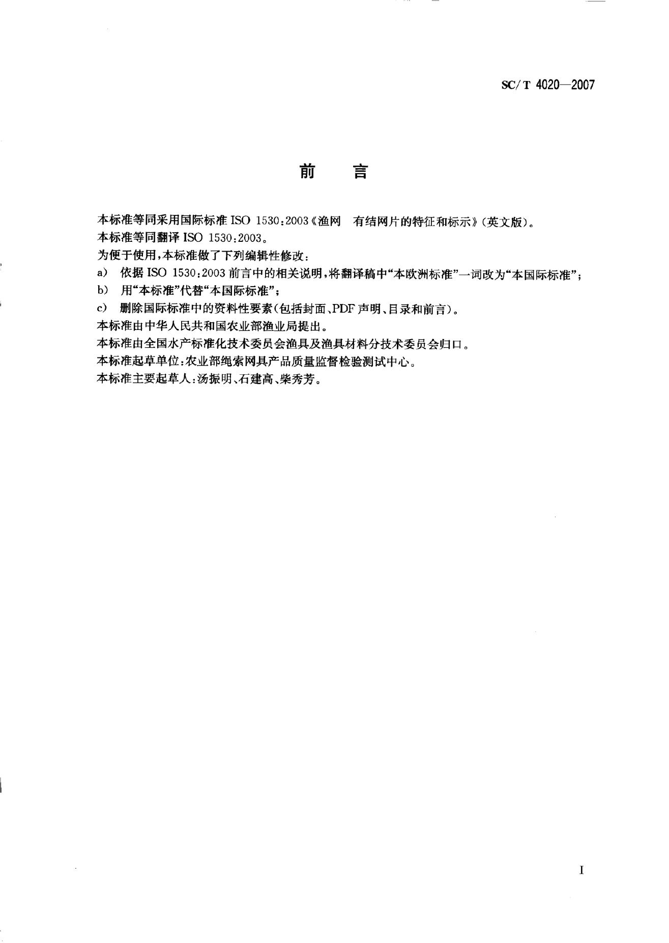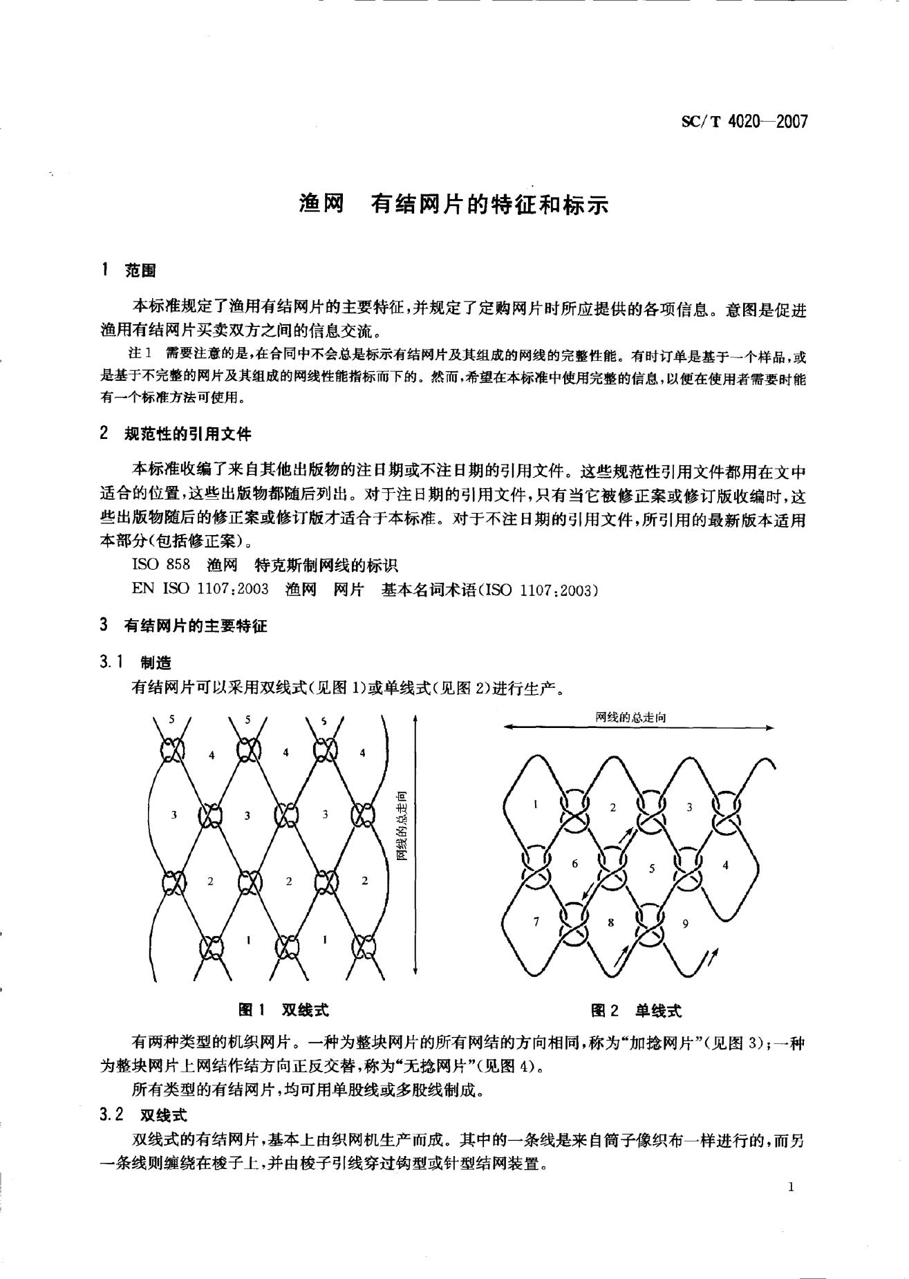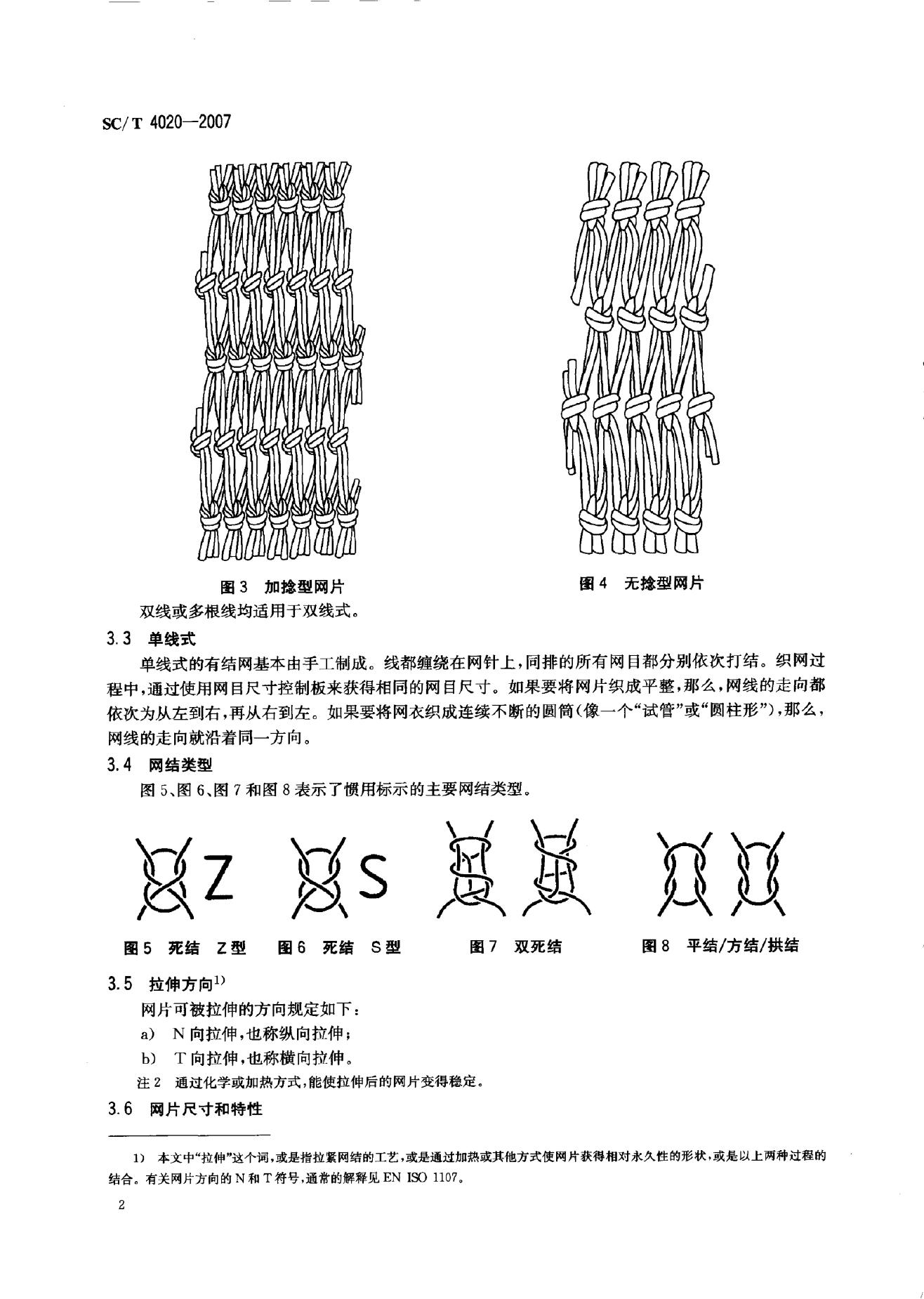 SC/T 4020-2007 渔网 有结网片的特征和标示