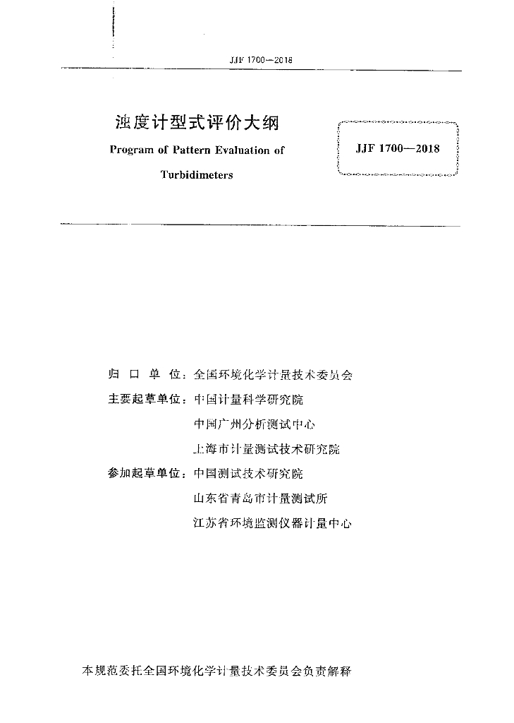 张文阁(中国计量科学研究院)、罗军(中国广州分析测试中心)、李智玮(上海市计量测试技术研究院)、刘俊杰(中国计量科学研究院)、袁礼(中国测试技术研究院)、夏春(山东省青岛市计量测试所)、王绍利(江苏省环境监测仪器计量中心)