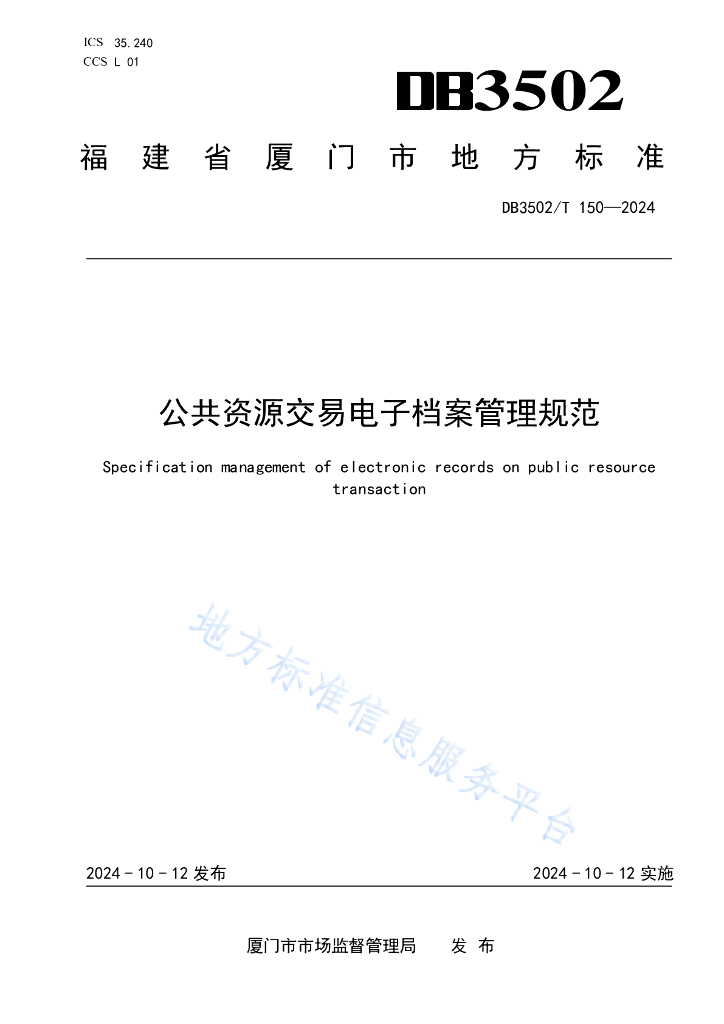 DB3502/T 150-2024 公共资源交易电子档案管理规范