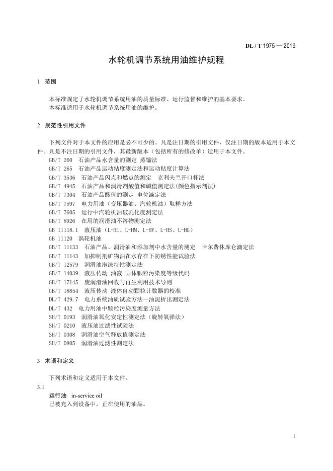 DL/T 1975-2019 水轮机调节系统用油维护规程