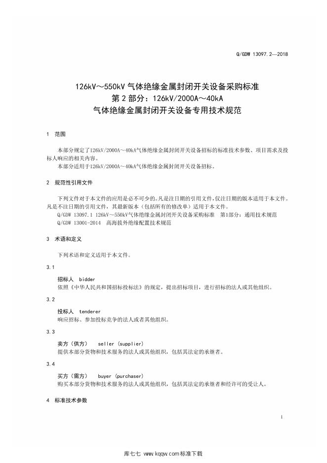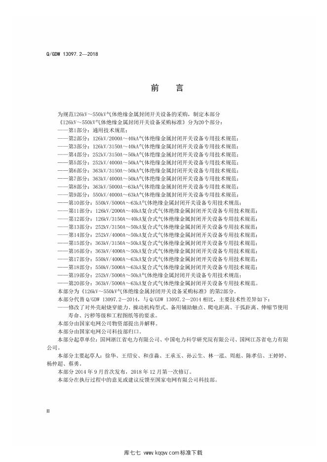 Q/GDW 13097.2-2018 126kV~550kV气体绝缘金属封闭开关设备采购标准 第2部分:126kV 2000A~40kA气体绝缘金属封闭开关设备专用技术规范
