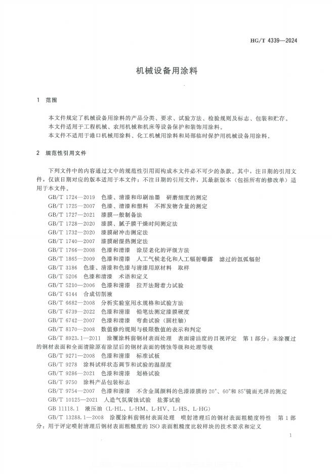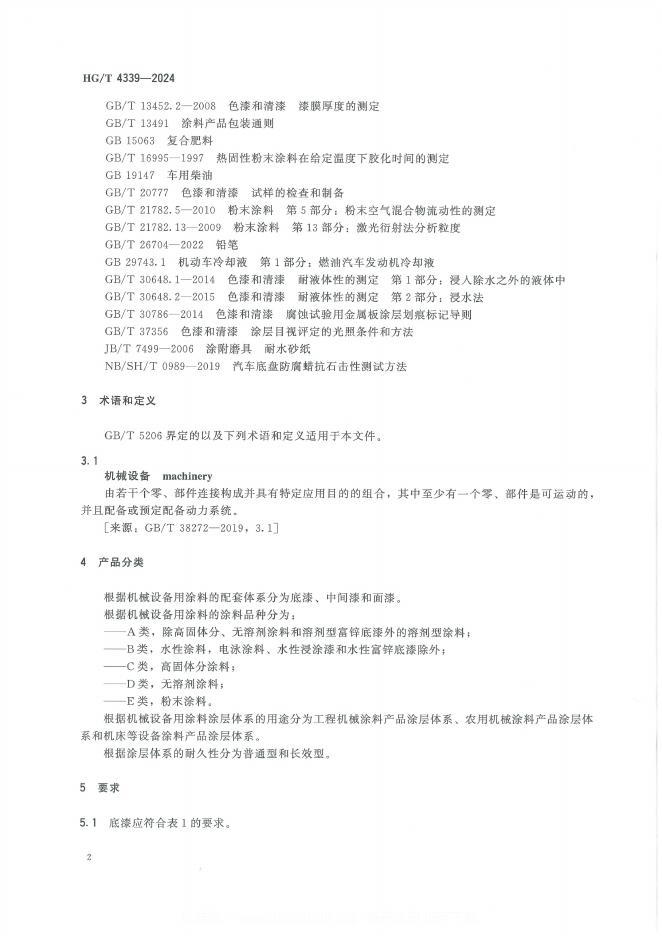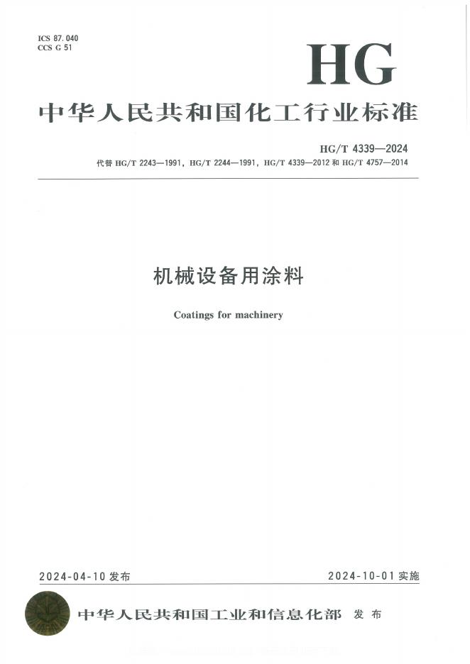 HG/T 4339-2024 机械设备用涂料