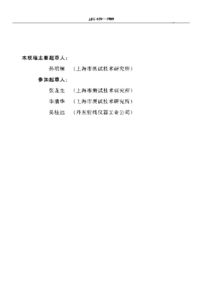 孙明楝(上海市测试技术研究所)、张龙生(上海市测试技术研究所)、李清华(上海市测试技术研究所)、吴桂远(丹东射线仪器工业公司)