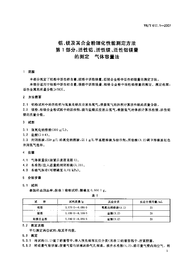 YS/T 617.1-2007 铝、镁及其合金粉理化性能测定方法 第1部分