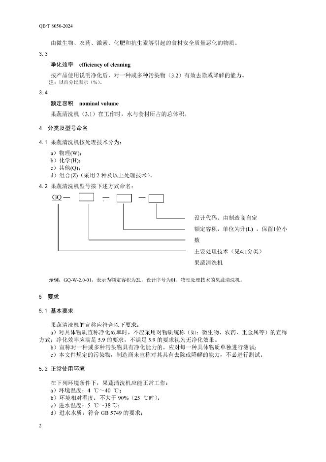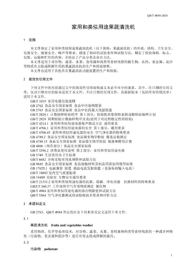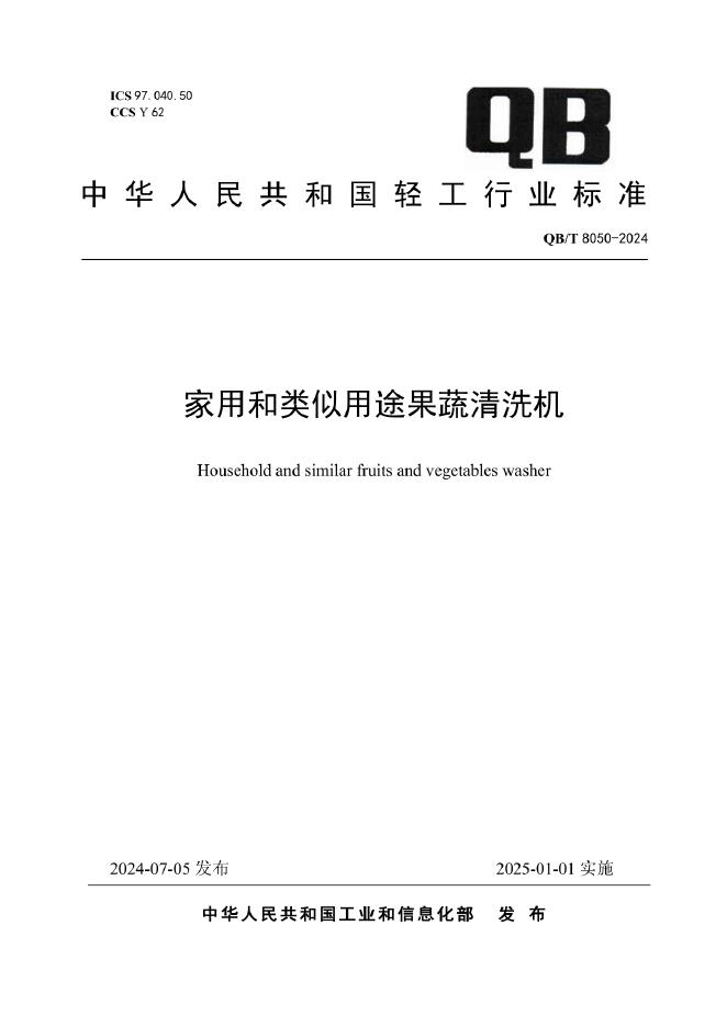 QB/T 8050-2024 家用和类似用途果蔬清洗机