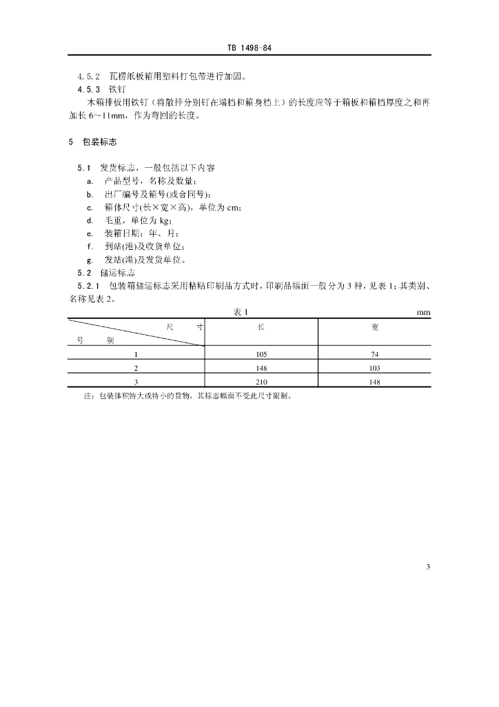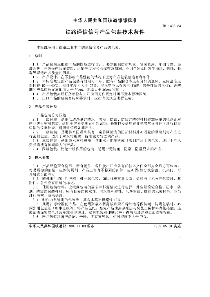 TB 1498-1984 铁路通信信号产品包装技术条件