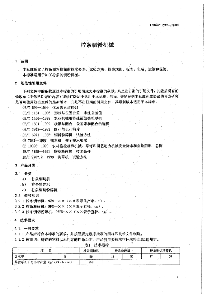 DB64/T 299-2004 柠条铡粉机械