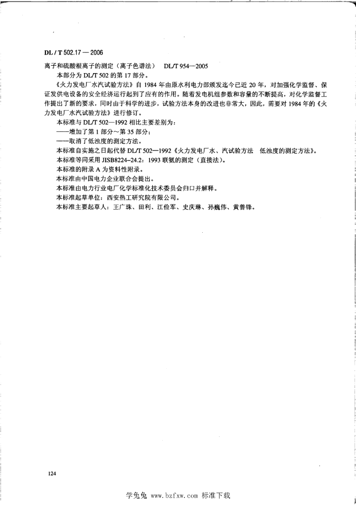 DL/T 502.17-2006 火力发电厂水汽分析方法 第17部分:联氨的测定(直接法)