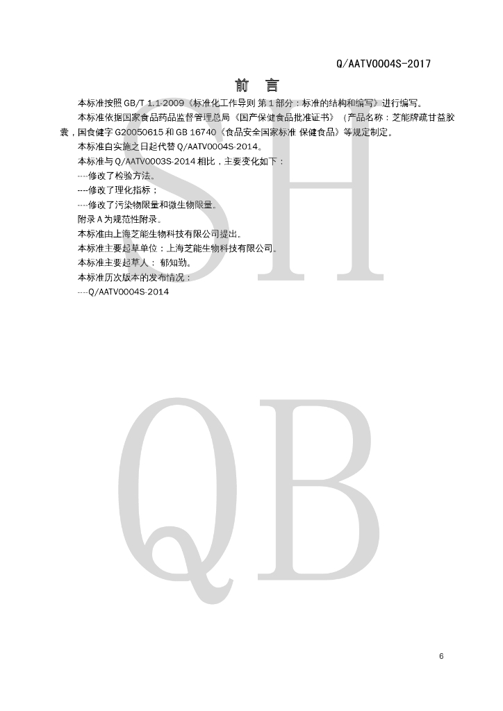 Q/AATV 0004S-2017 芝能牌疏甘益胶囊