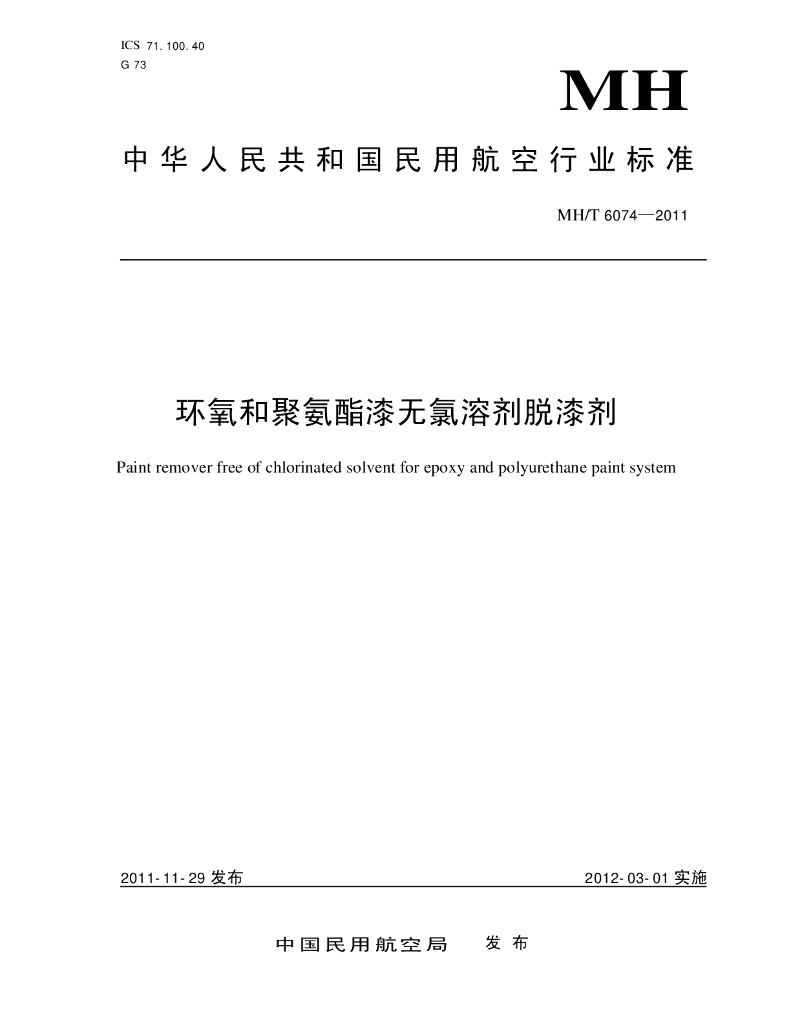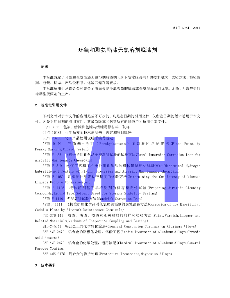 MH/T 6074-2011 环氧和聚氨酯漆无氯溶剂脱漆剂