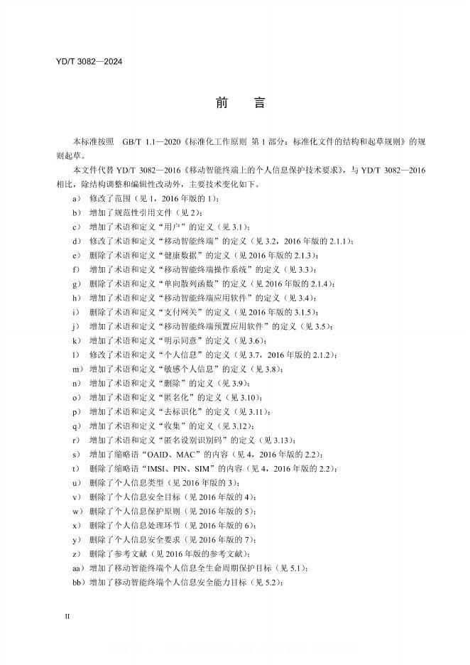 YD/T 3082-2024 移动智能终端个人信息保护规范