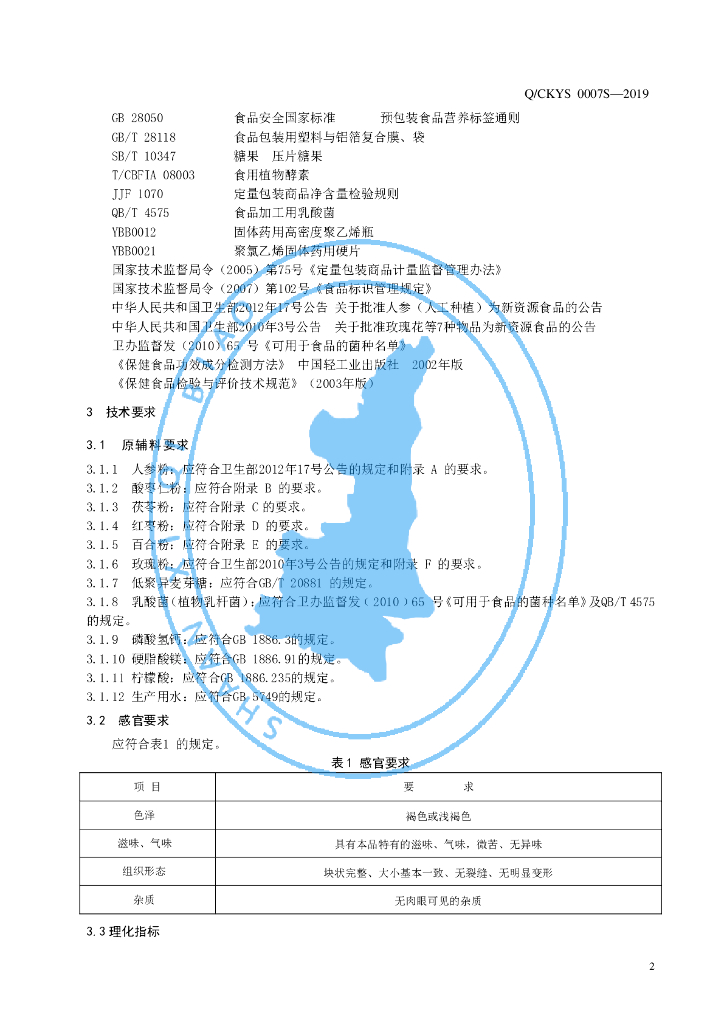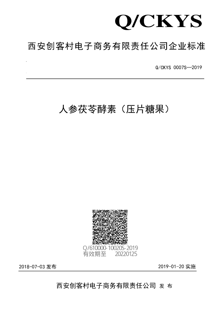 Q/CKYS 0007S-2019 人参茯苓酵素(压片糖果)
