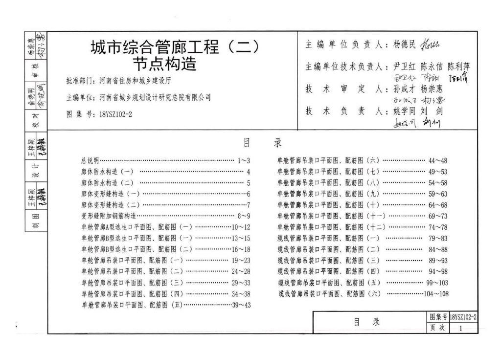 - 1118YSZ102-1 城市综合管廊工程(一)总体设计及附属设施图示图集