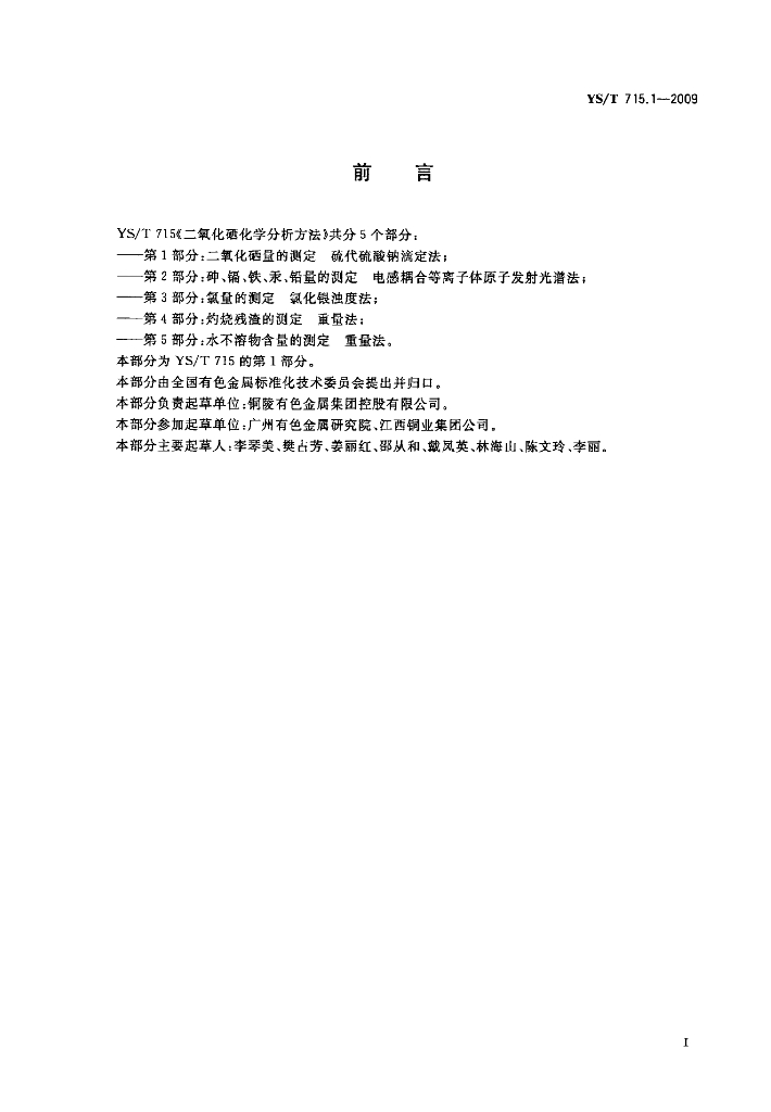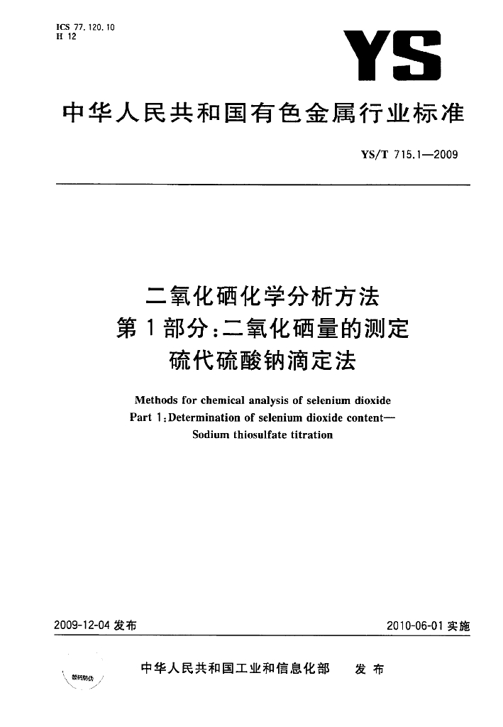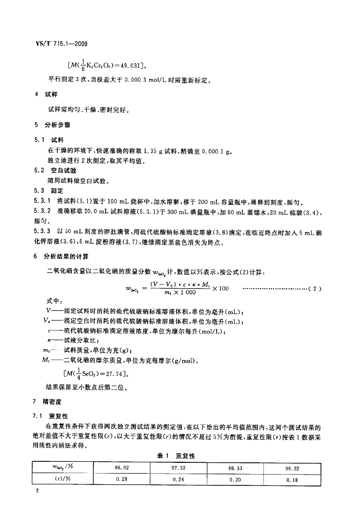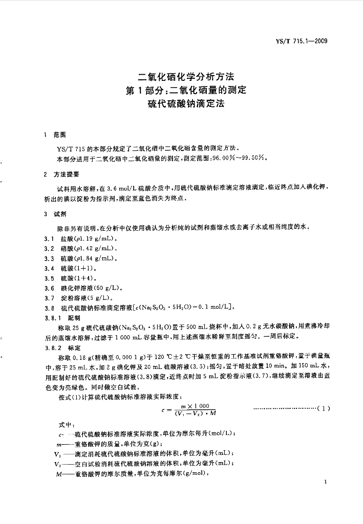 YS/T 715.1-2009 二氧化硒化学分析方法 第1部分:二氧化硒量的测定 硫代硫酸钠滴定法