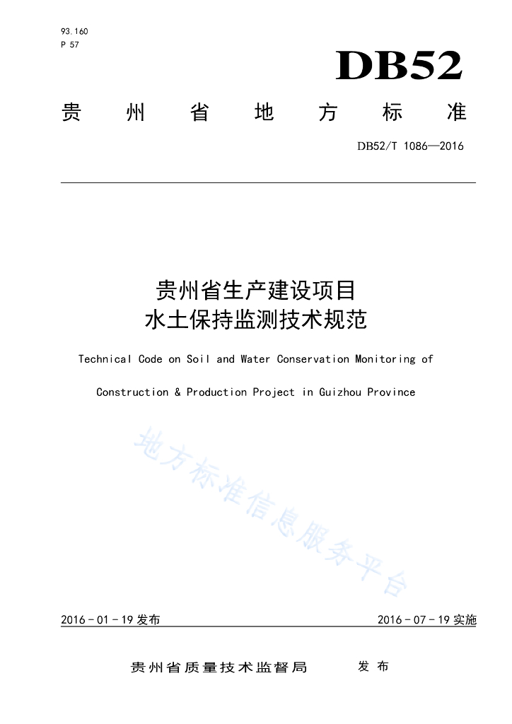 DB52/T 1086-2016 贵州省生产建设项目水土保持监测技术规范