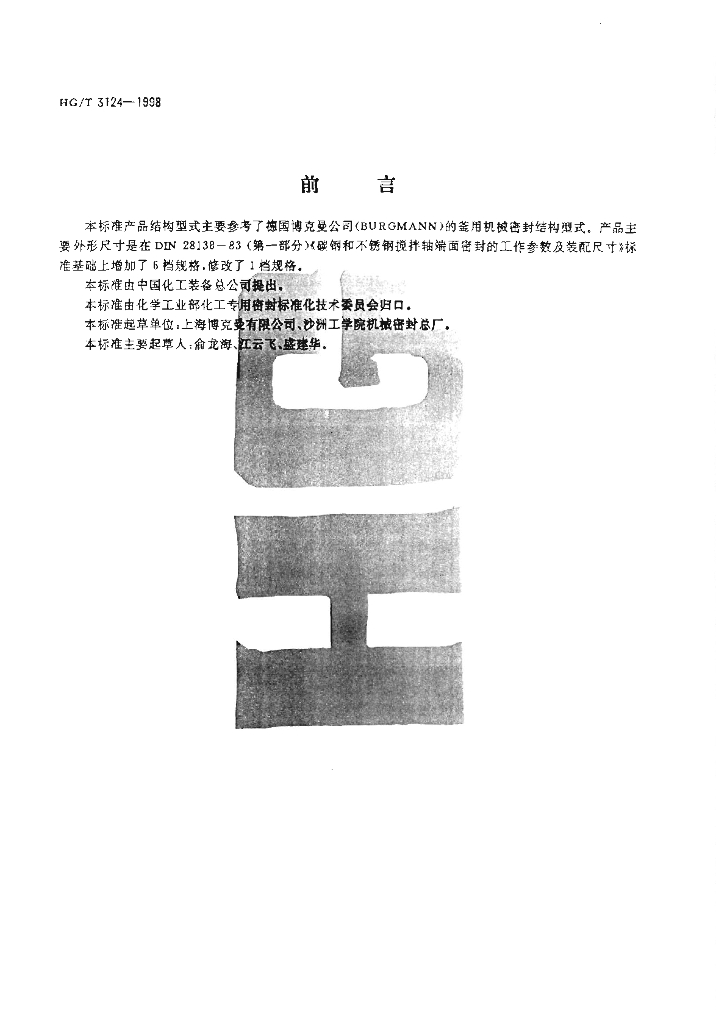 HG/T 3124-1998 焊接金属波纹管釜用机械密封技术条件