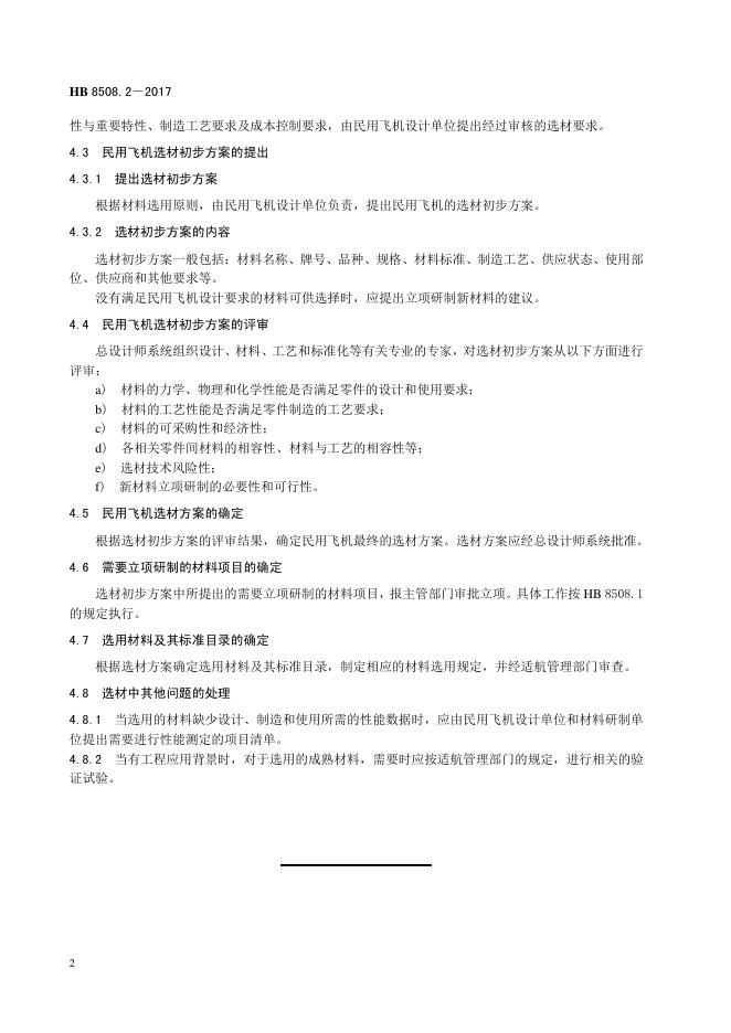 HB 8508.2-2017 民用飞机材料管理要求 第2部分:选用