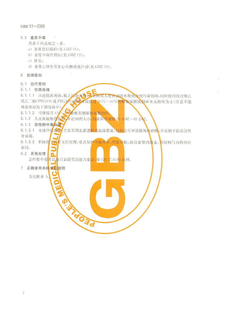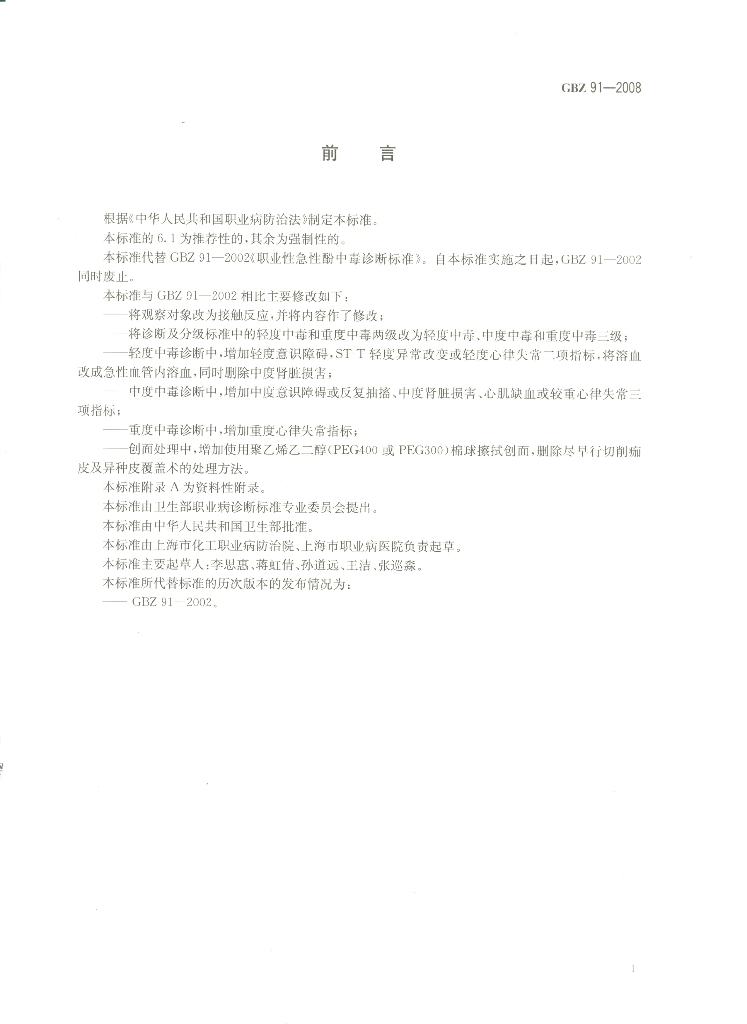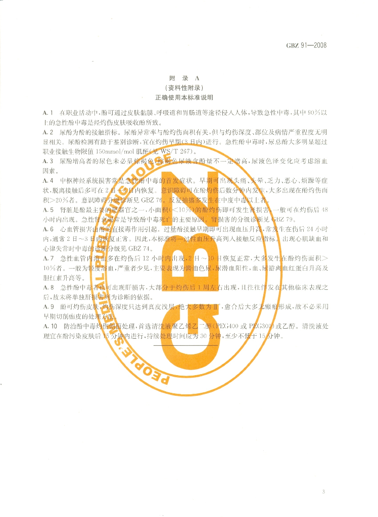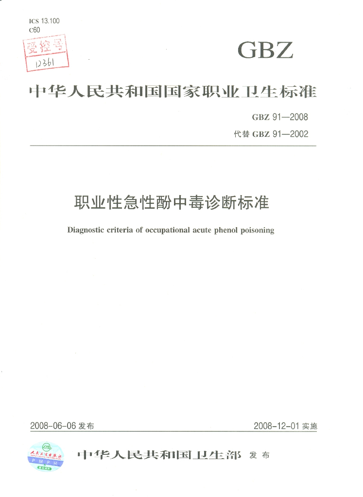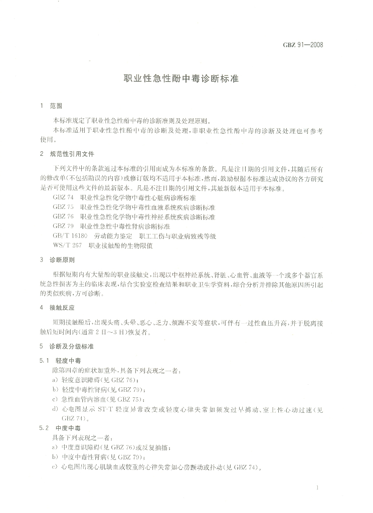 GBZ 91-2008 职业性急性酚中毒诊断标准