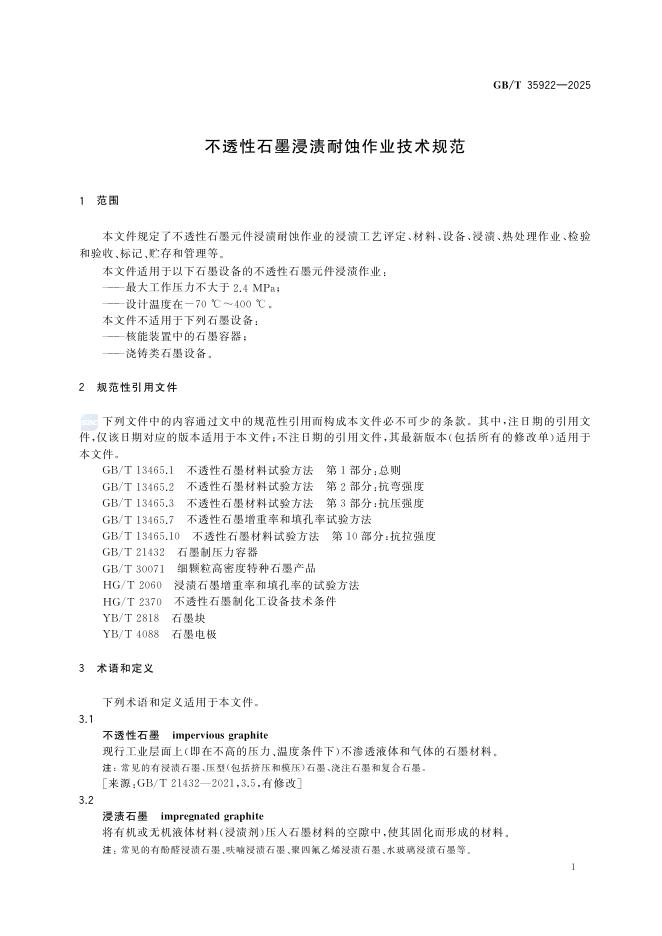 GB/T 35922-2025 不透性石墨浸渍耐蚀作业技术规范