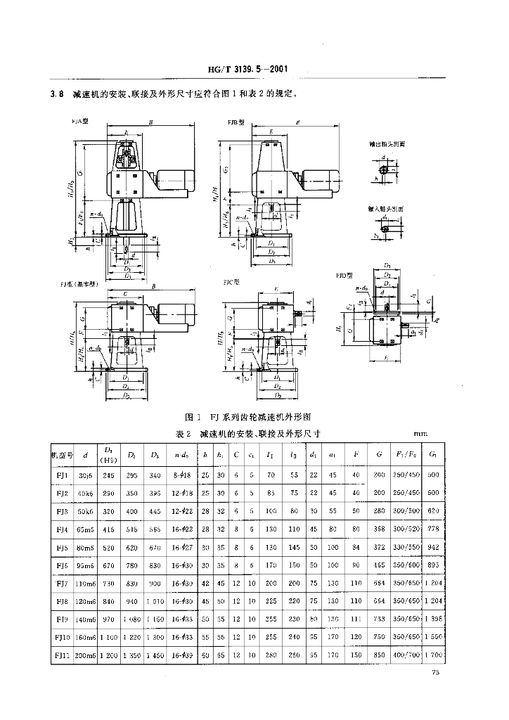 HG/T 3139.5-2001 釜用立式减速机 FJ 系列圆柱圆锥齿轮减速机