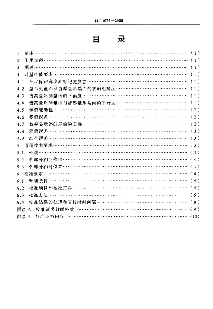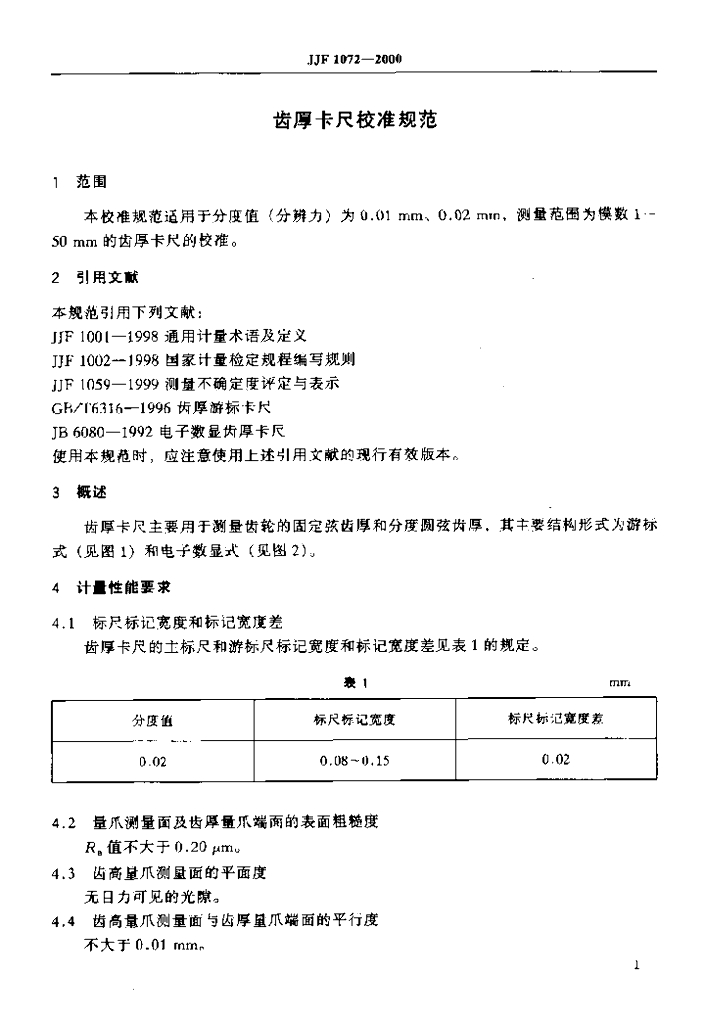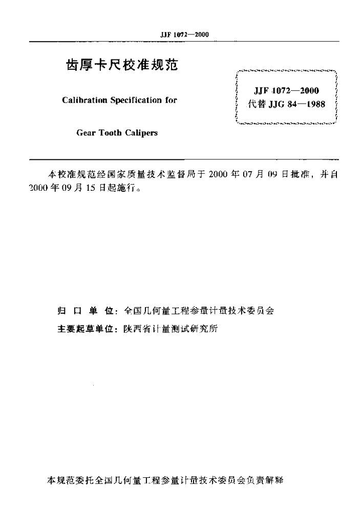 JJF 1072-2000 齿厚卡尺校准规范
