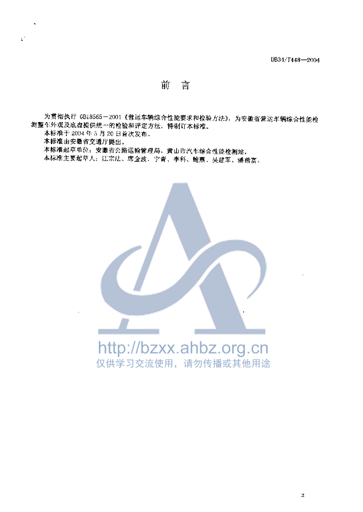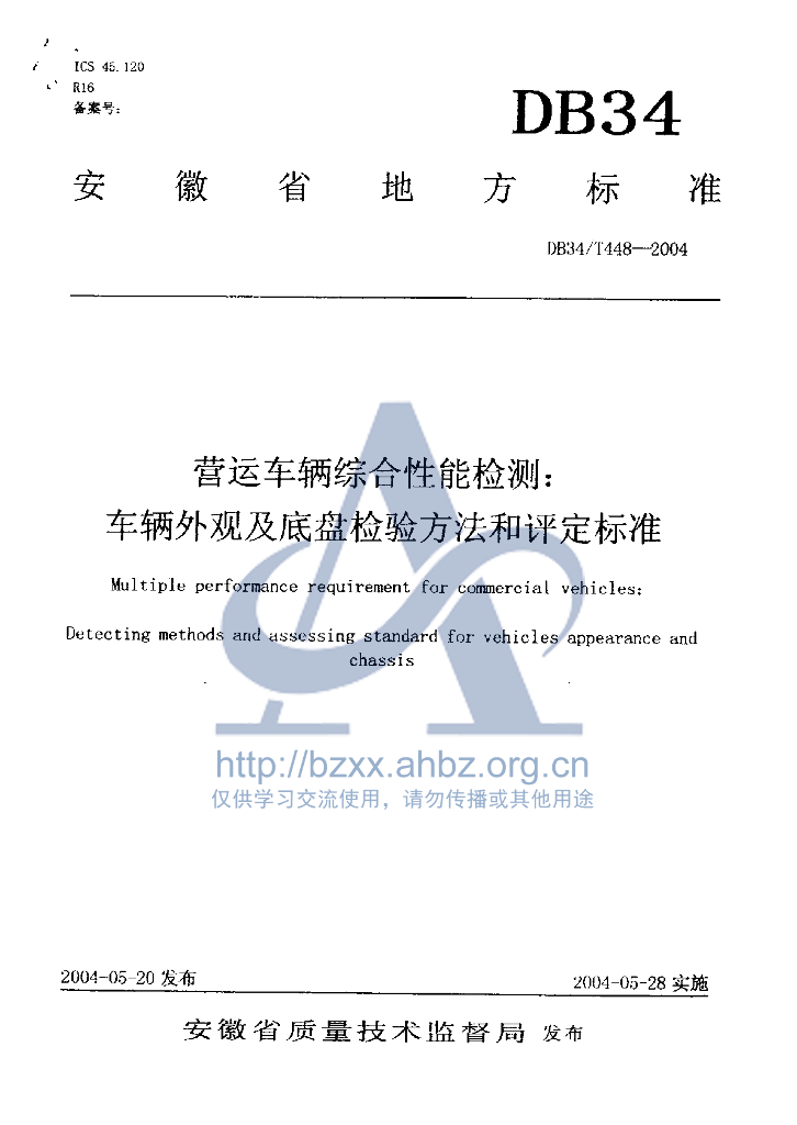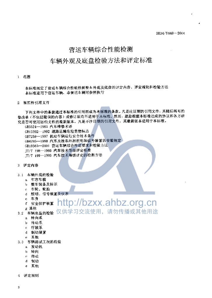 DB34/T 448-2004 营运车辆综合性能检测:车辆外观及底盘检验方法和评定标准
