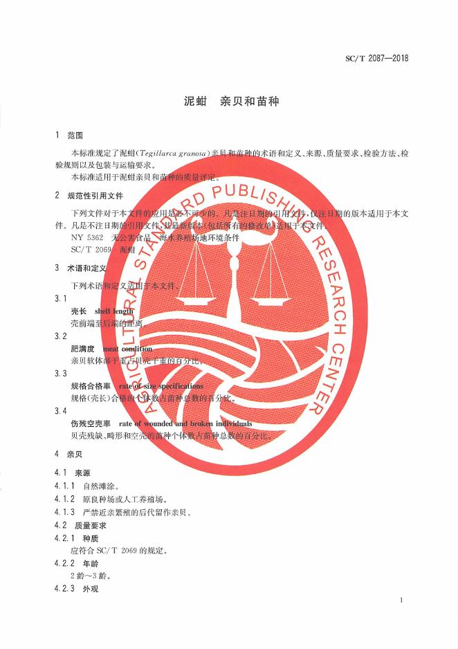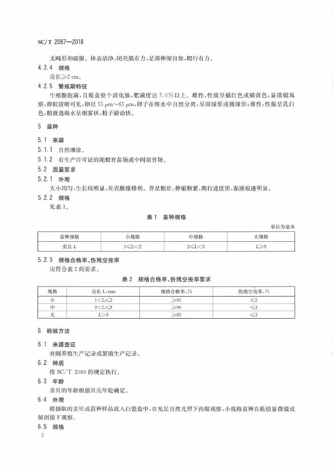 SC/T 2087-2018 泥蚶 亲贝和苗种