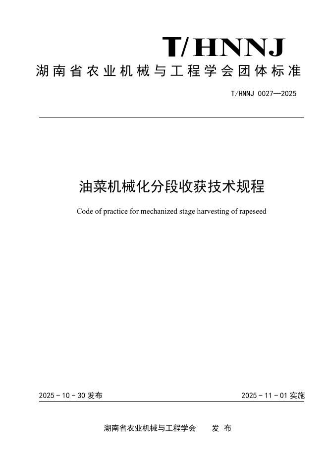 T/HNNJ 27-2025 油菜机械化分段收获技术规程