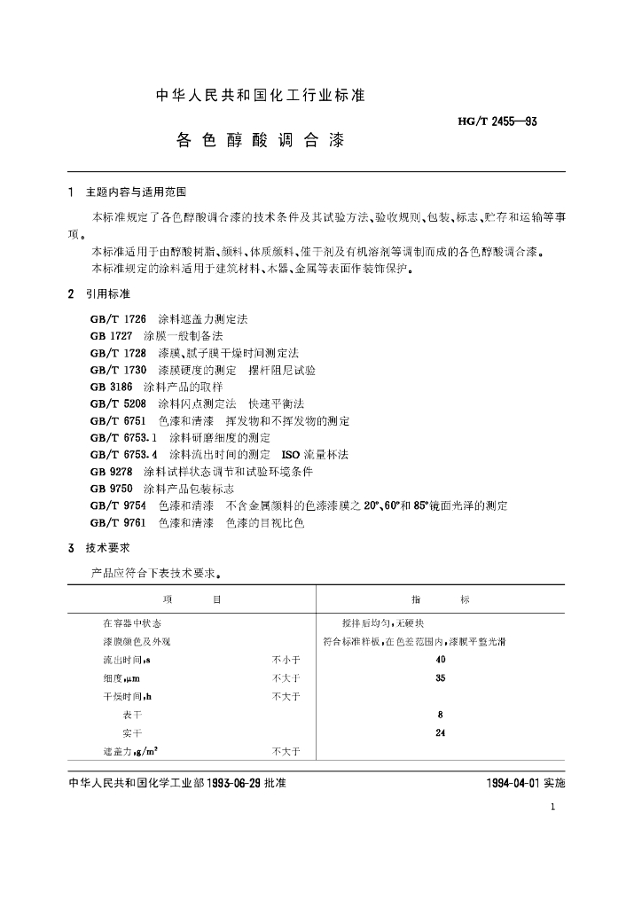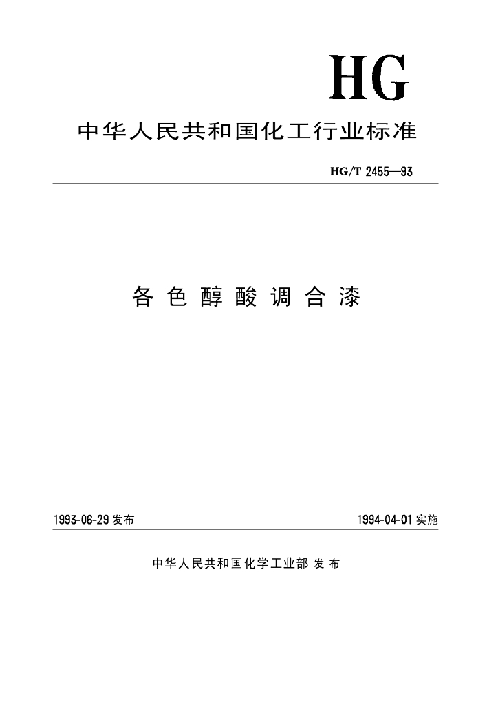 HG/T 2455-1993 各色醇酸调合漆