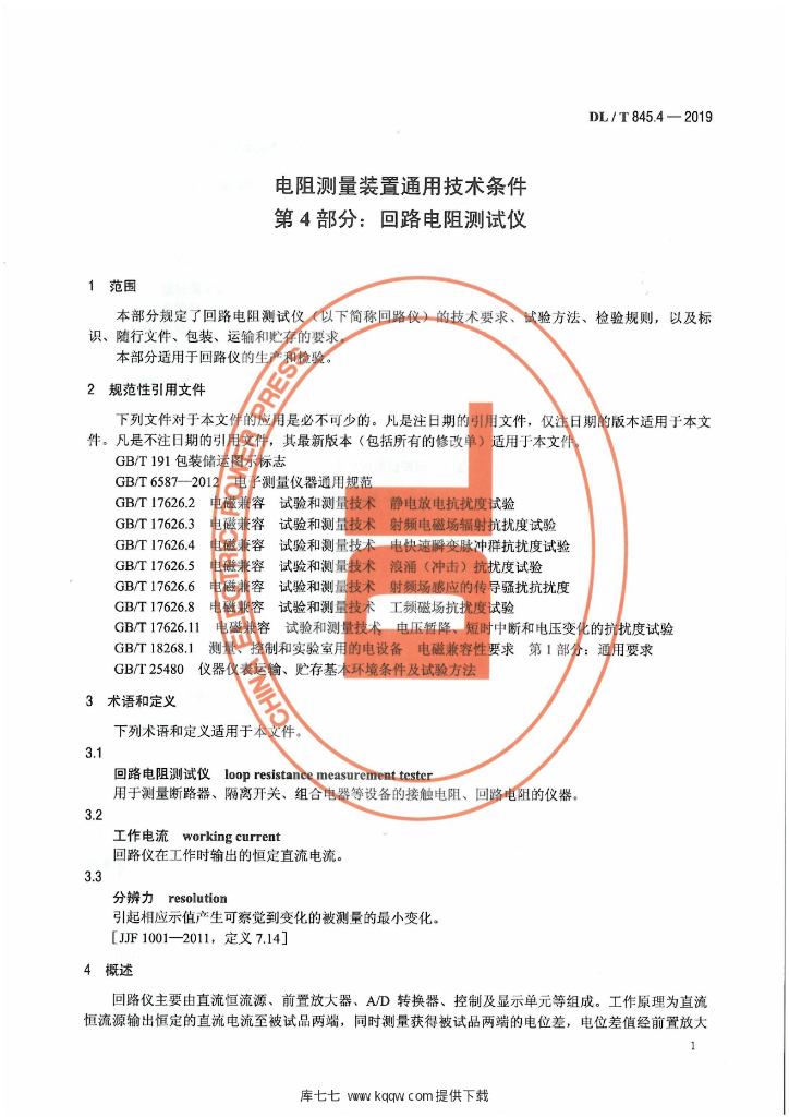 DL/T 845.4-2019 电阻测量装置通用技术条件 第4部分:回路电阻测试仪