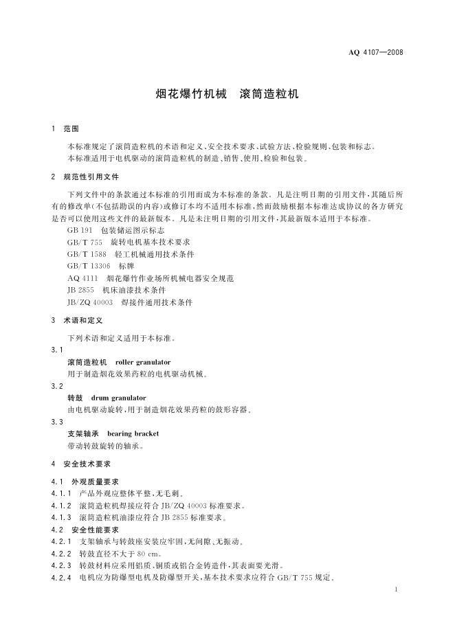 AQ 4107-2008 烟花爆竹机械 滚筒造粒机