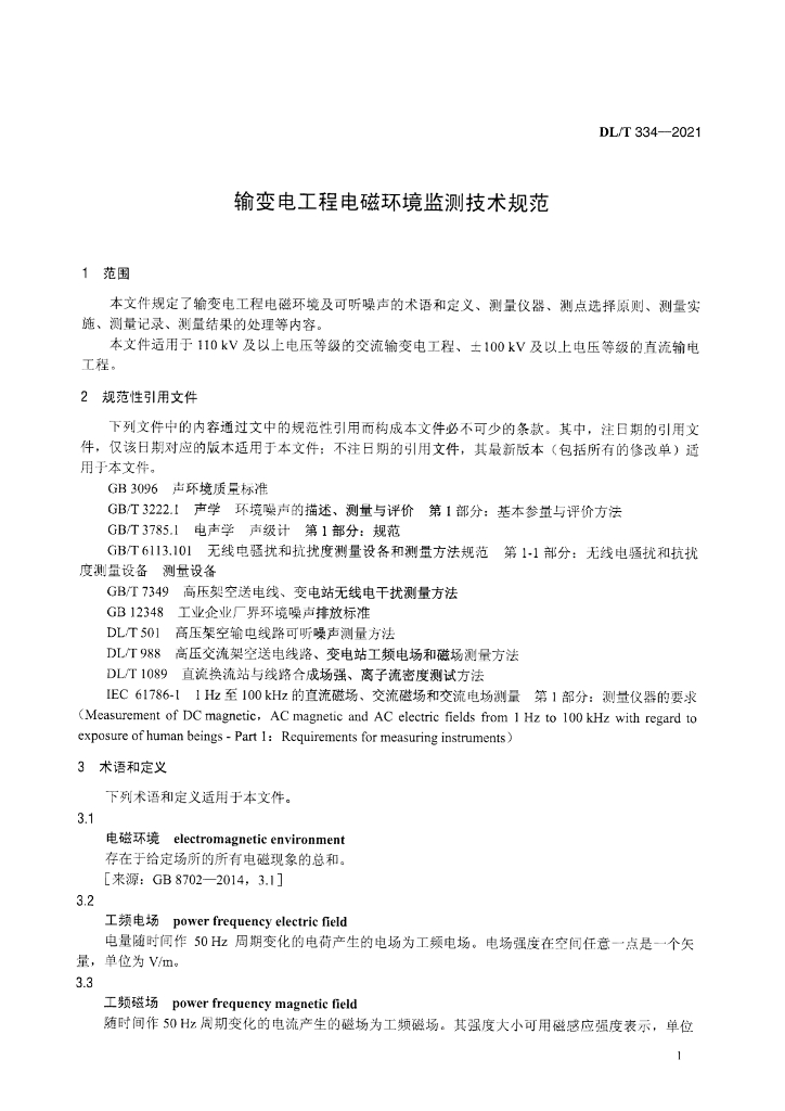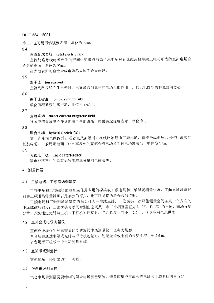 DL/T 334-2021 输变电工程电磁环境监测技术规范