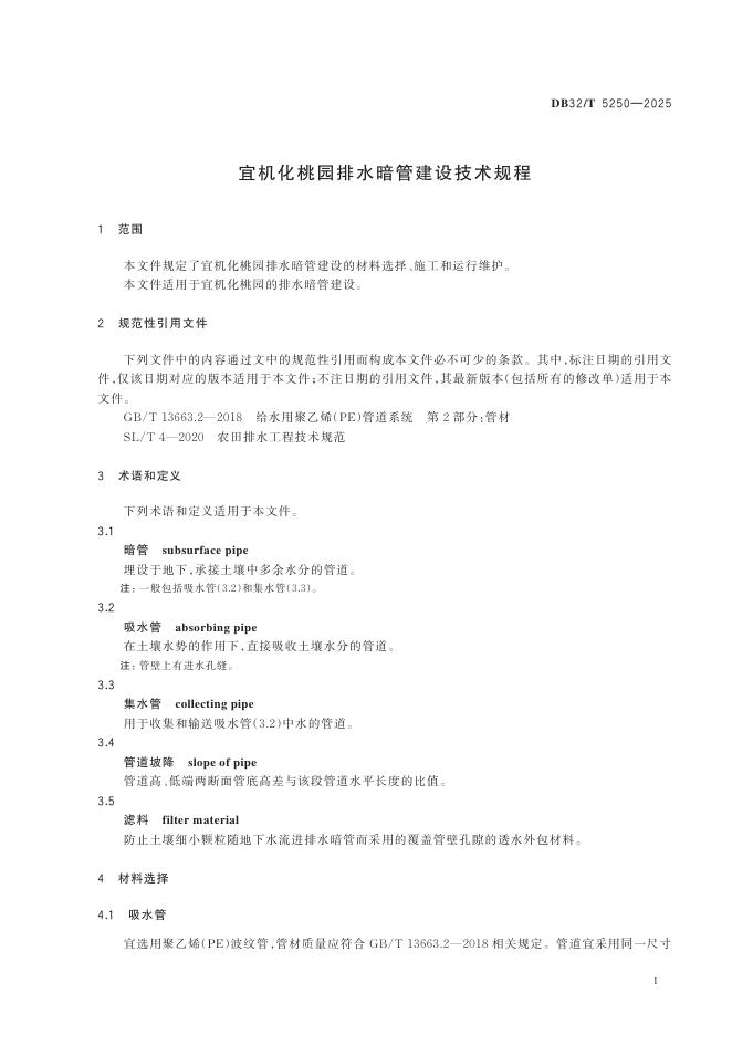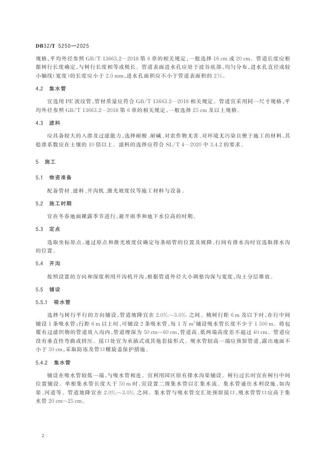 DB32/T 5250-2025 宜机化桃园排水暗管建设技术规程