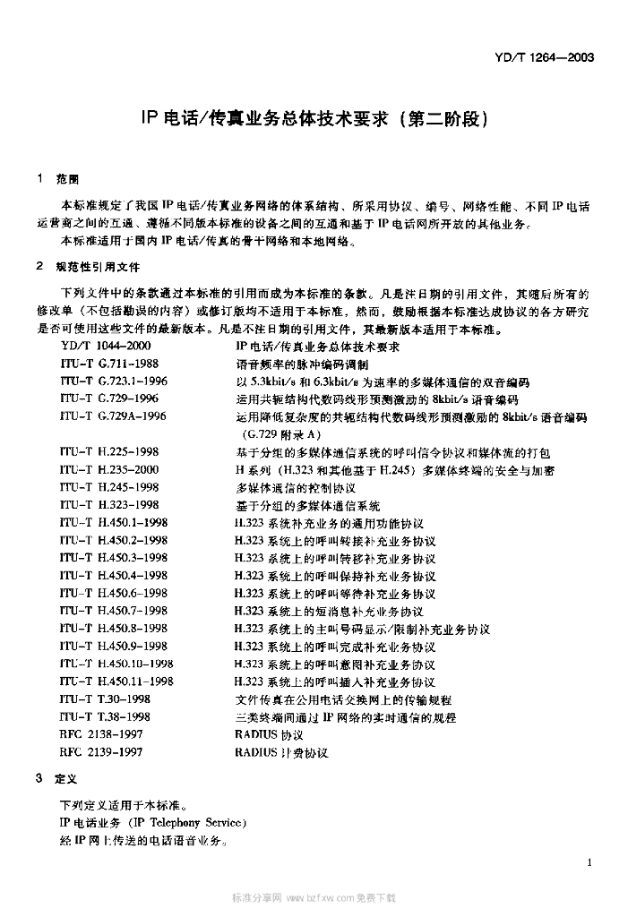 YD/T 1264-2003 IP 电话/传真业务总体技术要求(第二阶段)