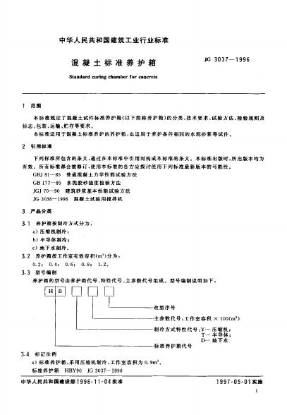JG 3037-1996 混凝土标准养护箱