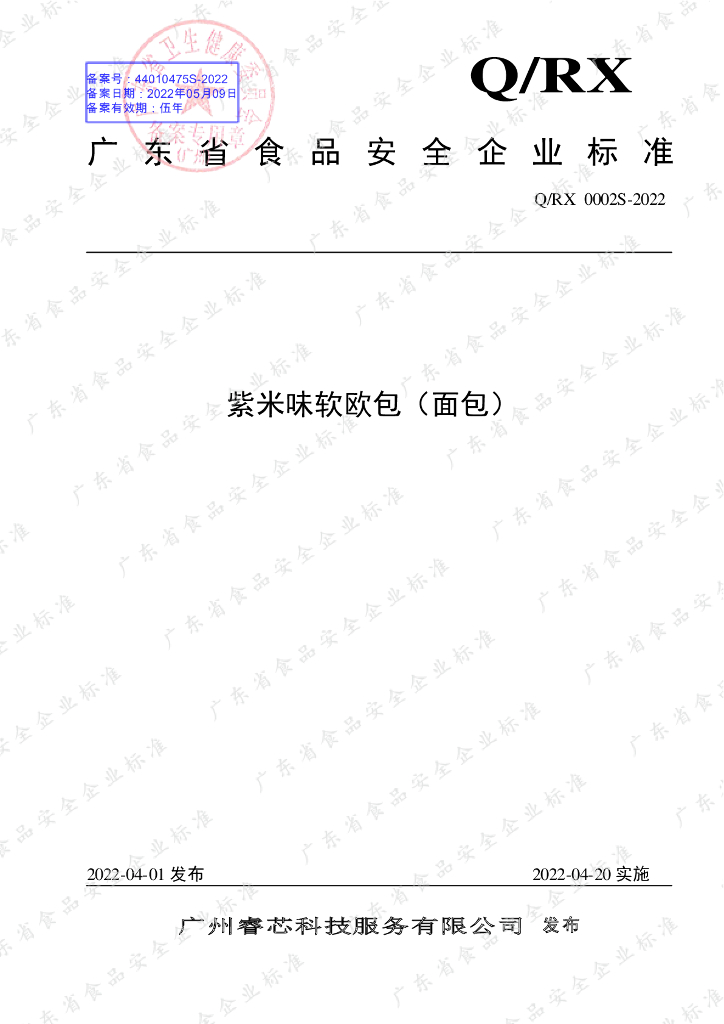 Q/RX 0002S-2022 紫米味软欧包(面包)