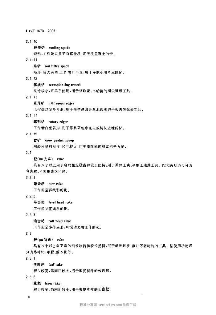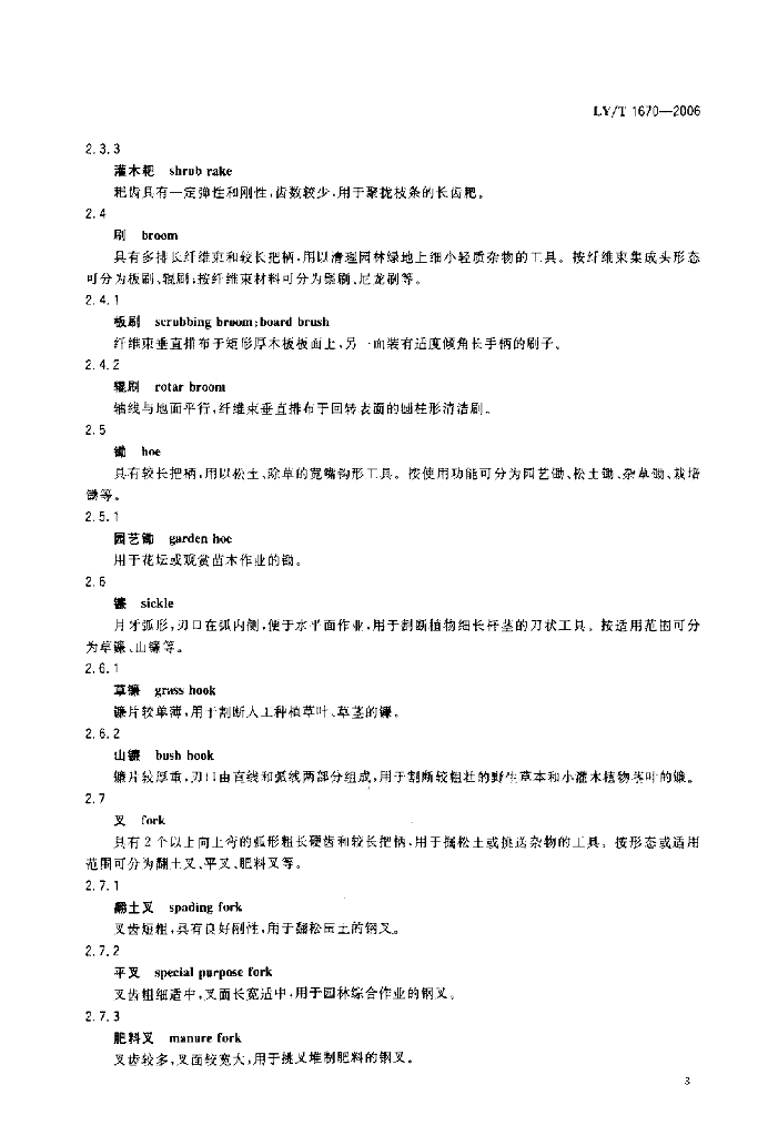 LY/T 1670-2006 林业机械 园林工具 分类词汇