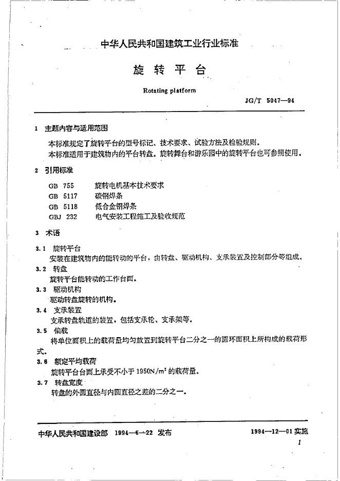 JG/T 5047-1994 旋转平台