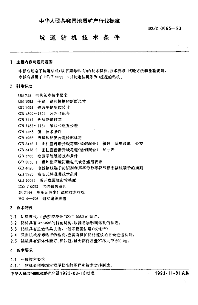 DZ/T 0065-1993 坑道钻机技术条件