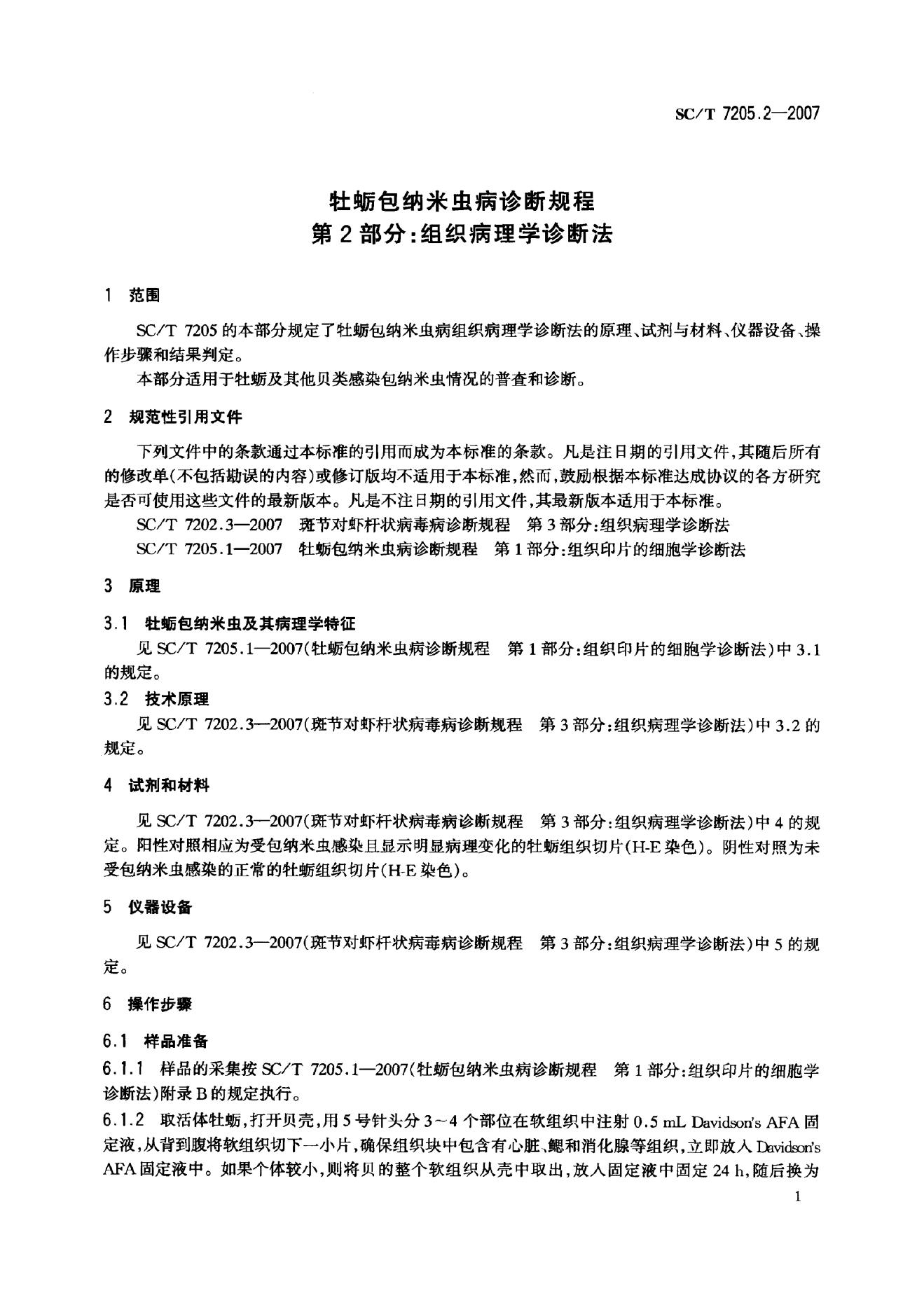 SC/T 7205.2-2007 牡蛎包纳米虫病诊断规程 第2部分:组织病理学诊断法