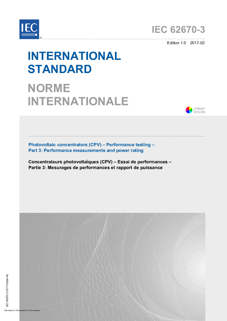 IEC 62670-3-2017 光伏集中器(Cpv)性能测试第3部分:性能测量和额定功率