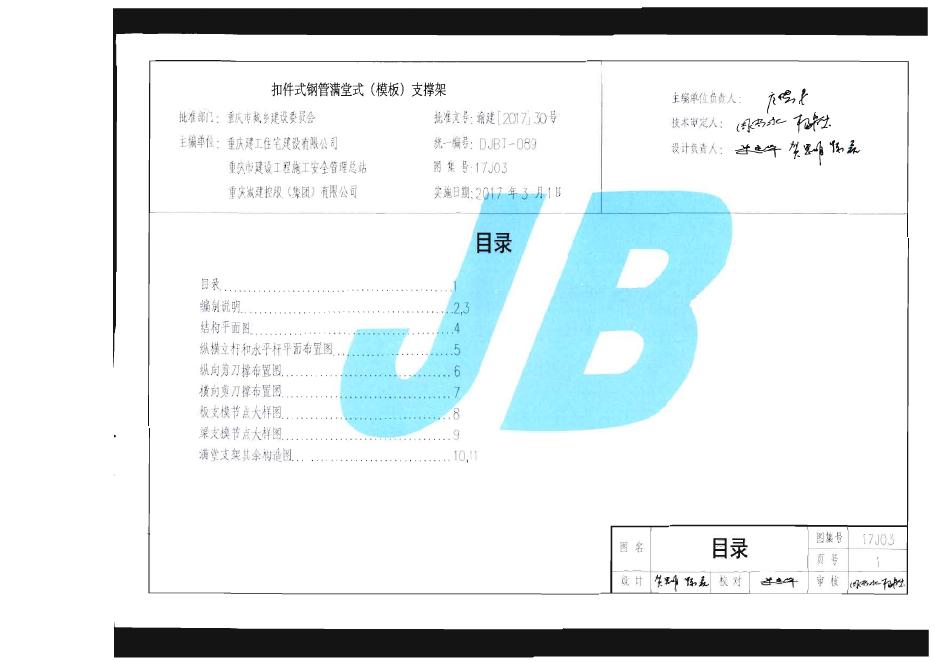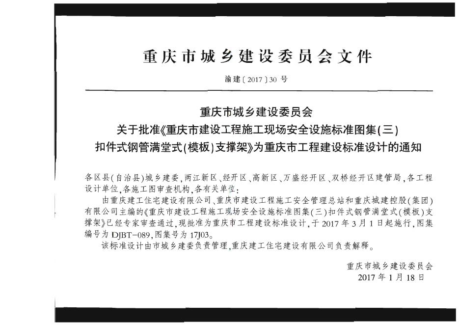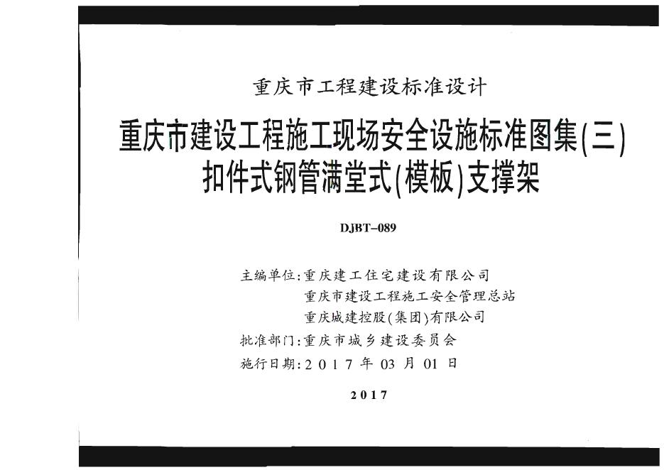 17J03 重庆市建设工程施工现场安全设施标准图集(三)扣件式钢管满堂式(模板)支撑架(DJBT 089-2017)