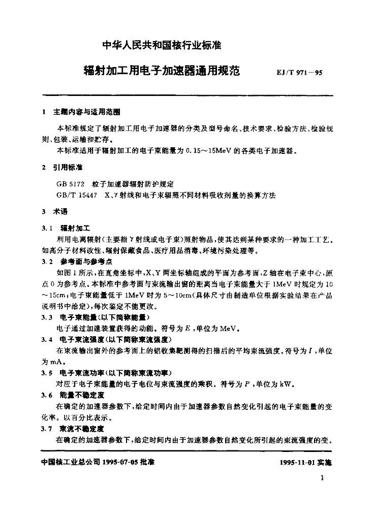 EJ/T 971-1995 辐射加工用电子加速器通用规范