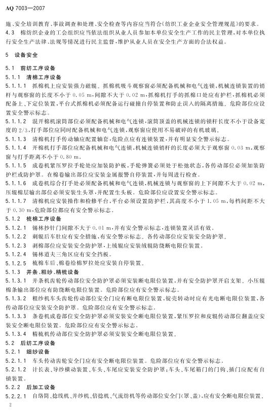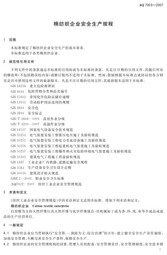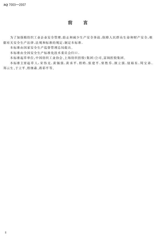 AQ 7003-2007 棉纺织企业安全生产规程