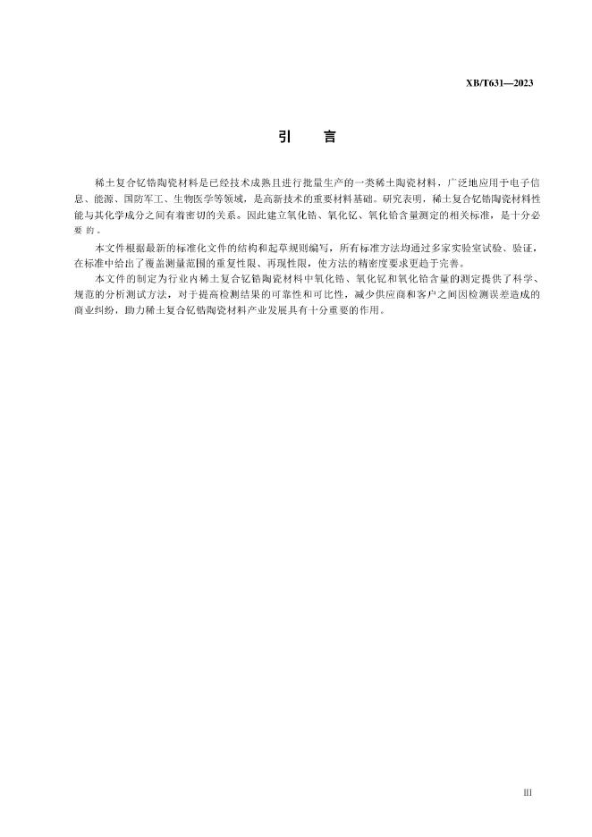 XB/T 631-2023 稀土复合钇锆陶瓷材料化学分析方法 氧化锆、氧化钇和氧化铪含量的测定