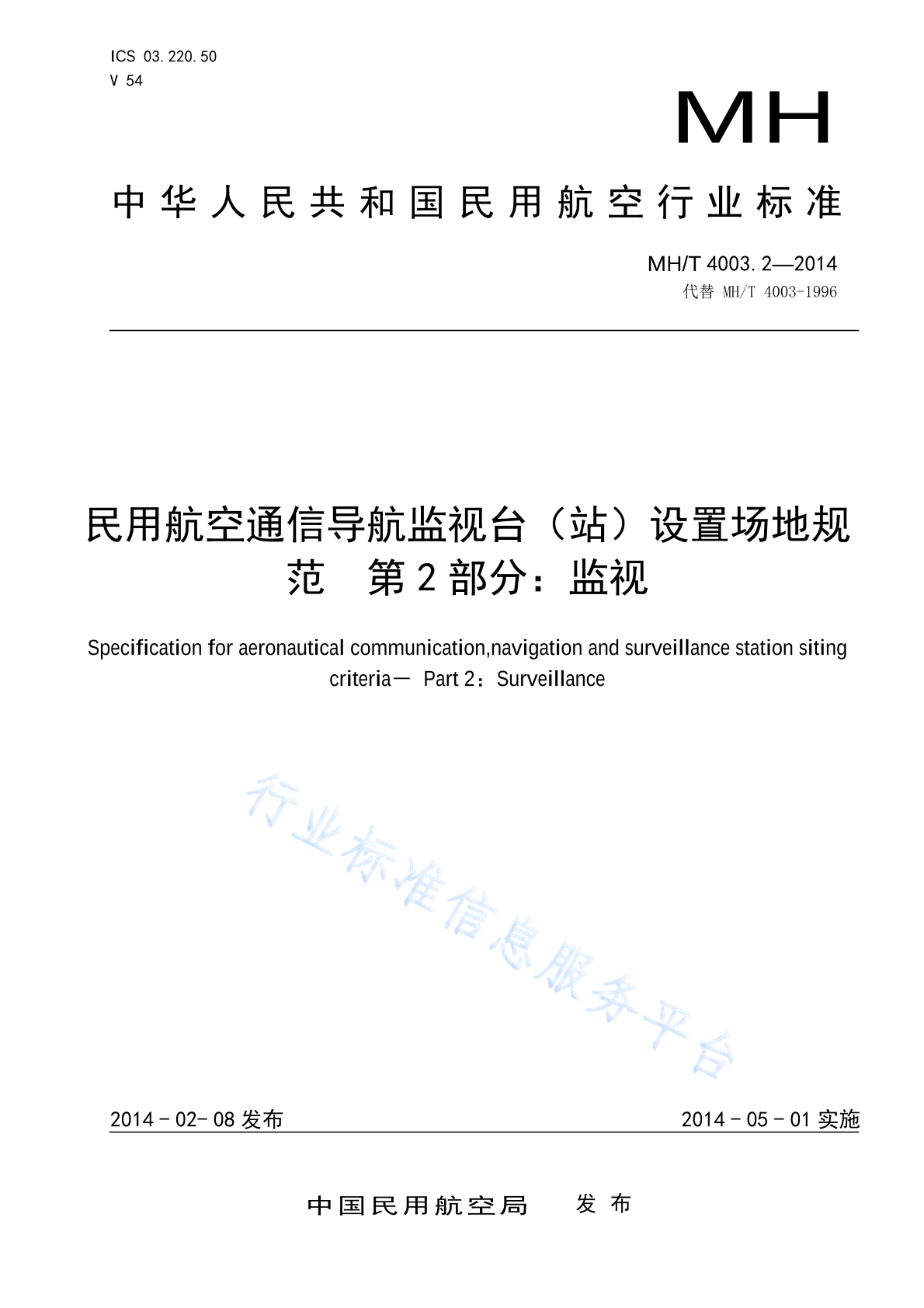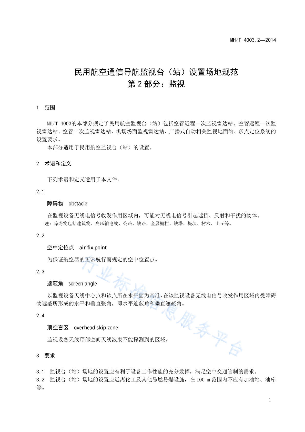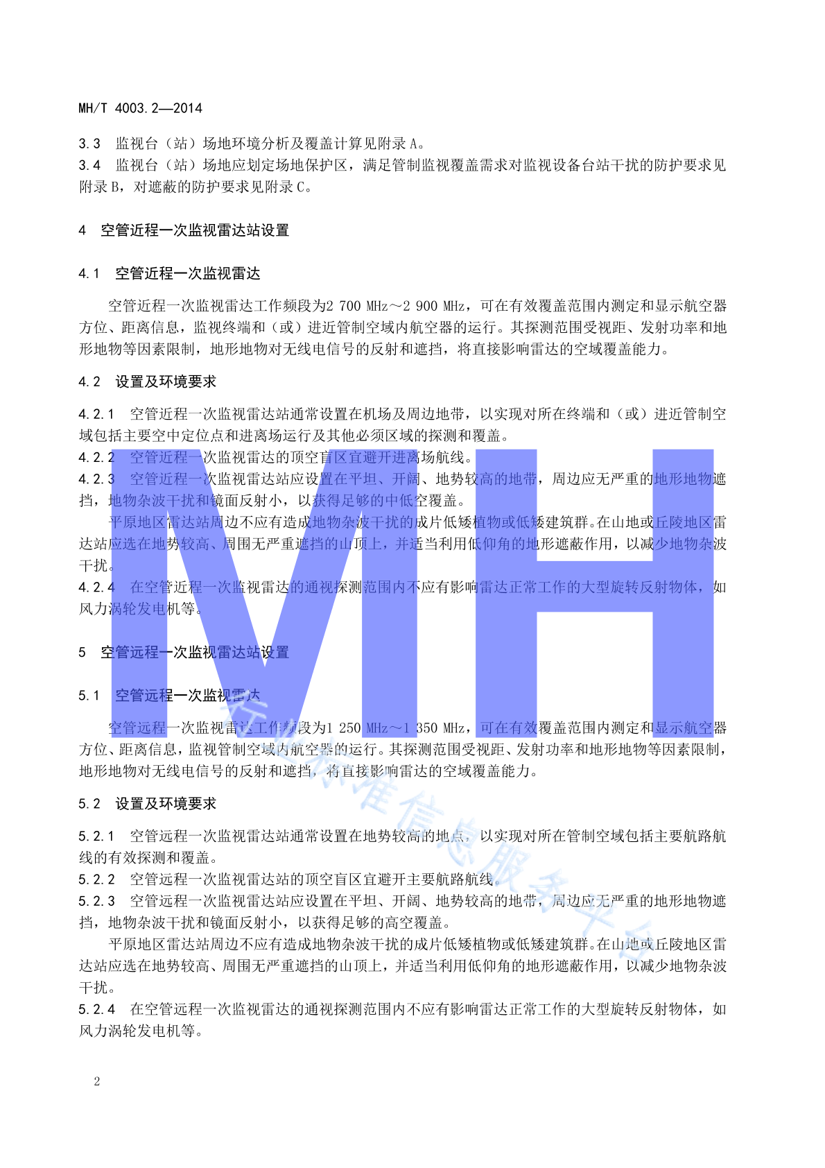 MH/T 4003.2-2014 民用航空通信导航监视台(站)设置场地规范 第2部分:监视