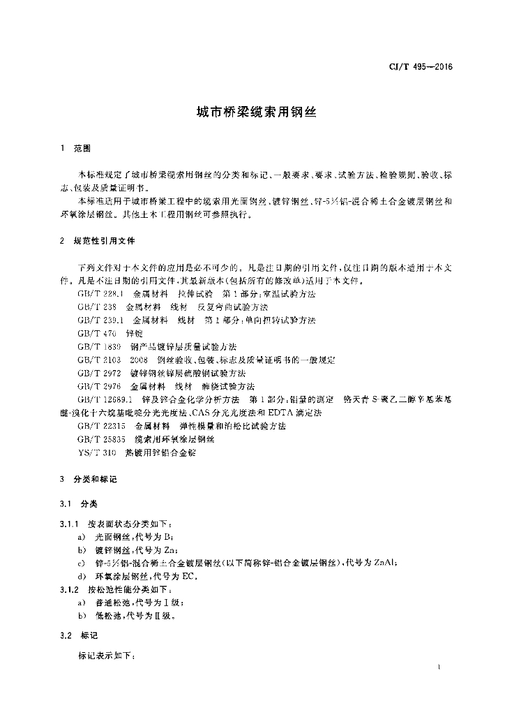 CJ/T 495-2016 城市桥梁缆索用钢丝