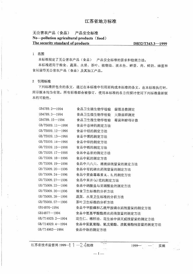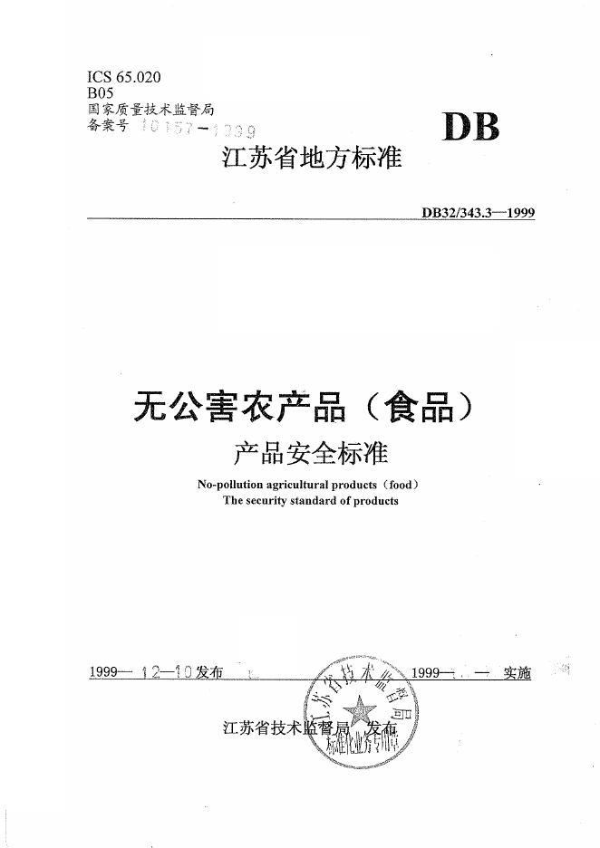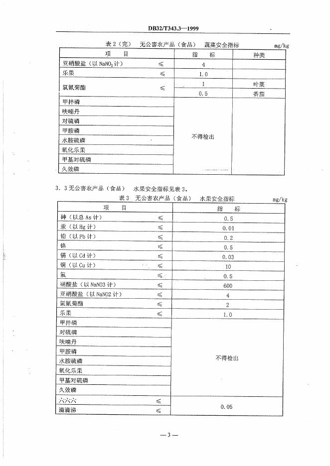 DB32/T 343.3-1999 无公害农产品(食品)产品安全标准