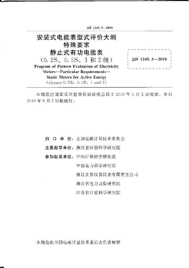 浙江省计量科学研究院、中国计量科学研究院、中国电力科学研究院、浙江正泰仪器仪表有限责任公司、浙江省电力试验研究院、江苏省计量科学研究院