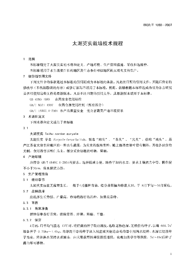 DB32/T 1060-2007 太湖芡实栽培技术规程